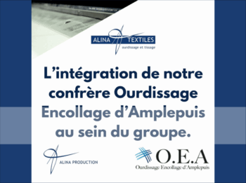 ALINA TEXTILES poursuit son développement et renforce son savoir-faire industriel avec l’acquisition de l’entreprise Ourdissage Encollage d’Amplepuis, spécialisée dans la préparation des fils destinés au tissage.