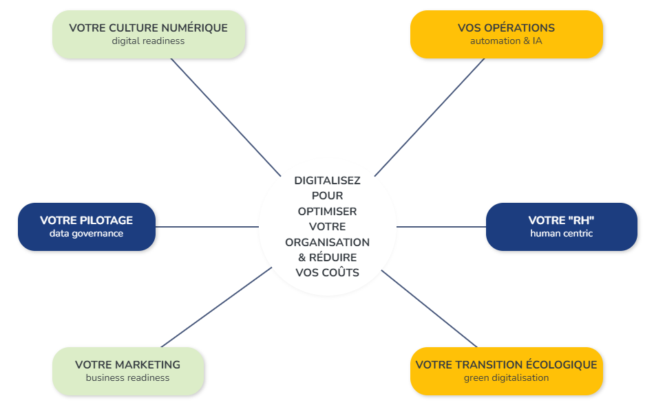 Cependant, pour qu’un projet de digitalisation soit une réussite, la méthode est essentielle, ce qui soulève de nombreuses questions : par où commencer ? Quel axe privilégier ? Quelles étapes suivre ? Comment impliquer efficacement les équipes dans le processus ?